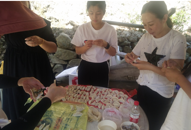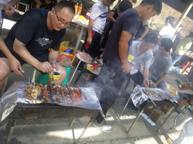 上午達(dá)到目的地后,各小組有條不紊的開始了第一項(xiàng)活動(dòng)-自主烹飪。大家烹飪的內(nèi)容也是豐富多彩,有燒烤、火鍋、包餃子、還有本地特色豬肉飯。平常不怎么露手的各位可都深藏不露,在公司里研發(fā)中心團(tuán)隊(duì)可是有著燒烤達(dá)人美稱的。今年又新晉一組美食達(dá)人團(tuán)隊(duì)總裁、人力組,因?yàn)樗麄兂晒Υ蚱屏送陰状螣i肉飯失敗案例,這個(gè)逆襲非常漂亮!毫不低調(diào)的說風(fēng)馳這個(gè)大家庭里有著廚師級(jí)別的成員也是高手云集的。經(jīng)過一番忙碌之后,大家心滿意足的享受完一起親手烹飪的美食。