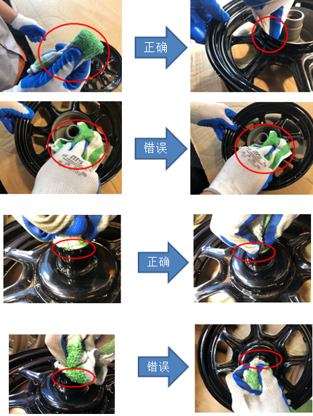 首先、朱新華主任針對8月份客戶反饋不良信息及不良圖片與在座培訓(xùn)人員展開細(xì)節(jié)講解,他于會上提到:8月份特黑產(chǎn)品共計發(fā)貨6180只,其中不良的前輪有76只,后輪96,不良占比2.78%。上述的這些不良,都是由于我司員工在蘸取藥劑進(jìn)行擦拭過程中,沒有嚴(yán)格按照作業(yè)標(biāo)準(zhǔn)及其注意點而產(chǎn)生的。這些不良又都是需要經(jīng)過一段時間后才能顯現(xiàn),所以,過程中的標(biāo)準(zhǔn)作業(yè)對于問題的杜絕顯得尤為重要。
