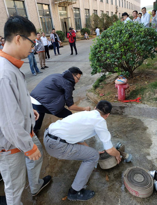 公司每年都會(huì)開展2次以上消防演練競賽活動(dòng),同時(shí)開展多次消防知識(shí)培訓(xùn),目的是讓員工提高員工安全消防意識(shí),增強(qiáng)自我保護(hù)能力,學(xué)習(xí)和掌握消防安全知識(shí)及對(duì)突發(fā)火災(zāi)的應(yīng)變、逃生技能。今年公司于10月19日下午在廠區(qū)內(nèi)開展了消防演練競賽活動(dòng),活動(dòng)包含單人手提4KG干粉50m滅火、5人2盤水帶連接競賽及火災(zāi)場(chǎng)所逃生演練,各部門員工踴躍響應(yīng)號(hào)召主動(dòng)參加了此次演練。