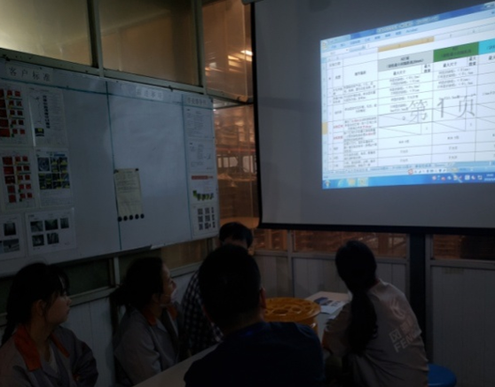 首先,利歐先生采用PPT講解對相關人員進行理論知識的灌輸,再從書面質(zhì)量標準的要求,針對每個工藝和生產(chǎn)區(qū)域進行要點剖析。并結(jié)合實際的區(qū)域缺陷分布和缺陷類別進行詳細講解,通過實物案例和理論知識對比分析,讓現(xiàn)場的所有參訓人員對檢驗標準有了更加深刻的理解,并高度認識到世界先進公司的質(zhì)量標準的苛刻性和嚴謹性。